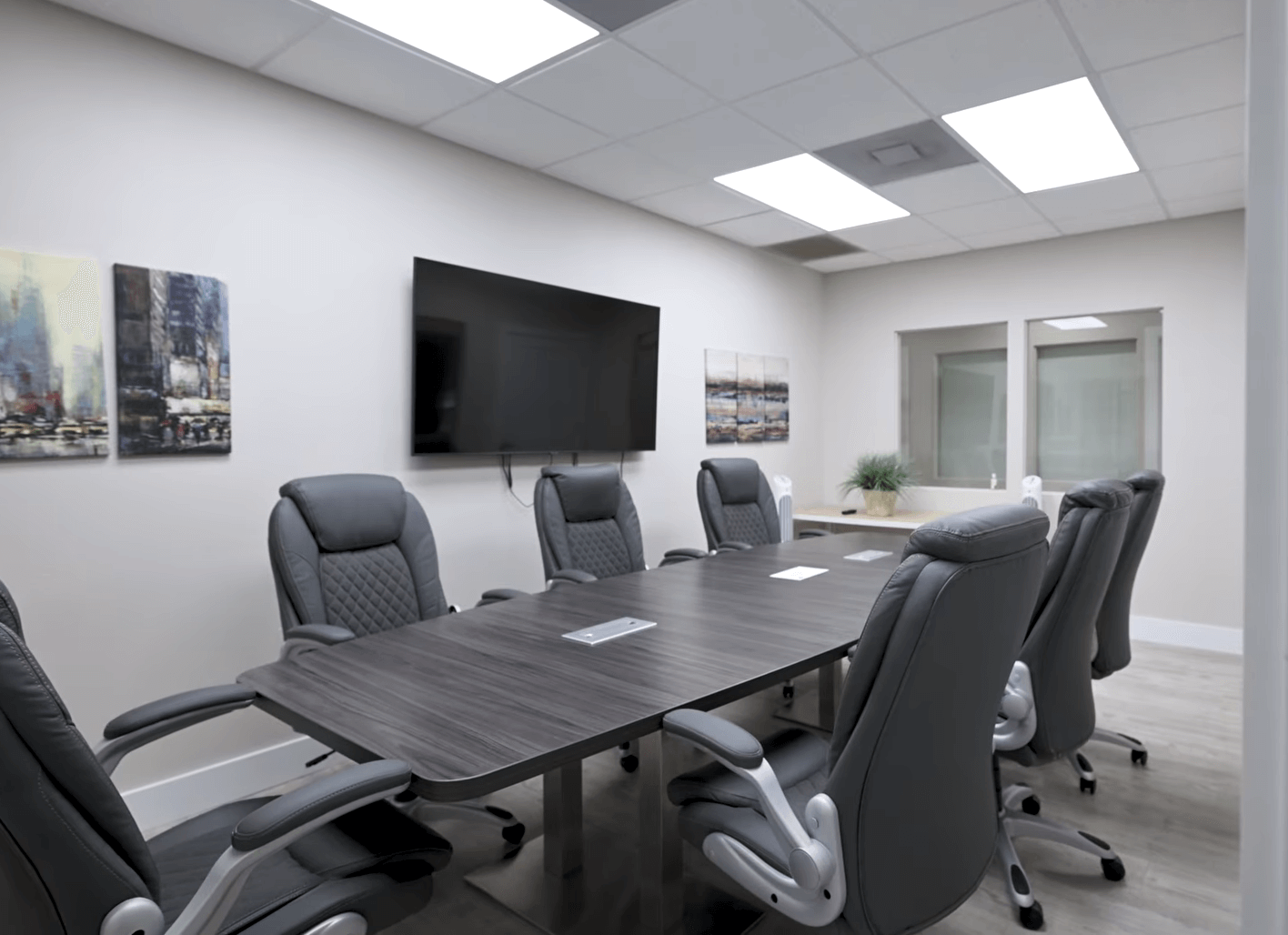 The room is available by the hour, making it a flexible option for both short meetings and longer sessions. Whether you’re meeting clients, conducting interviews, hosting training sessions, or delivering presentations, our conference room provides a quiet and professional setting designed to help you make the right impression.
